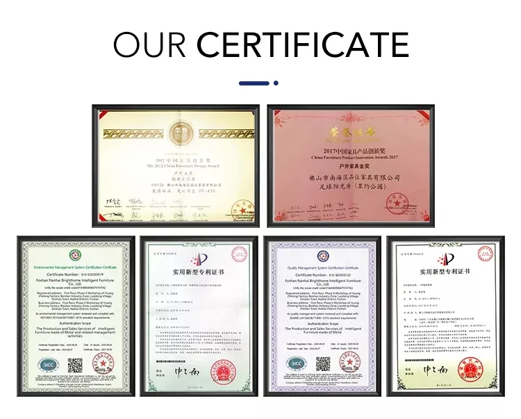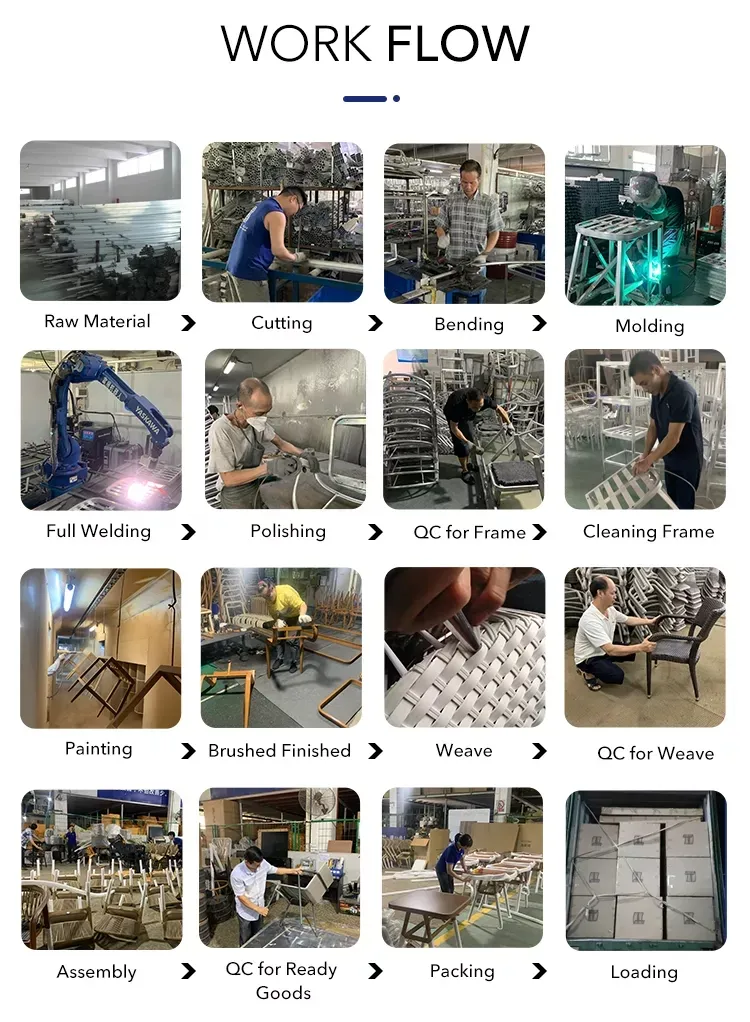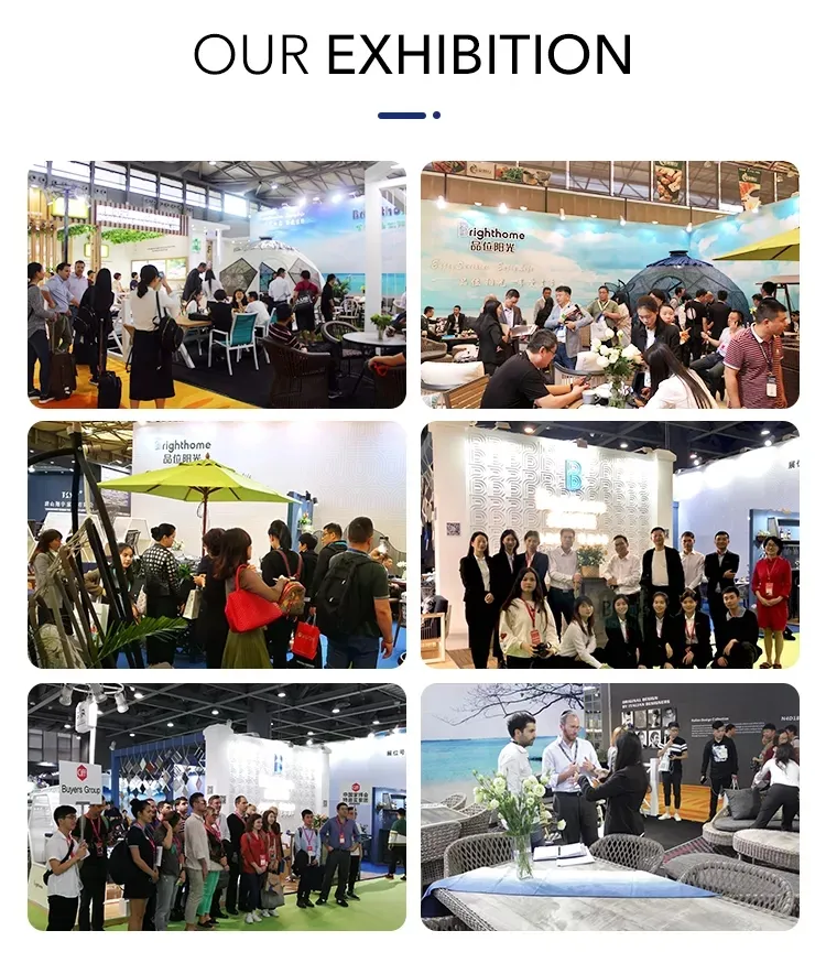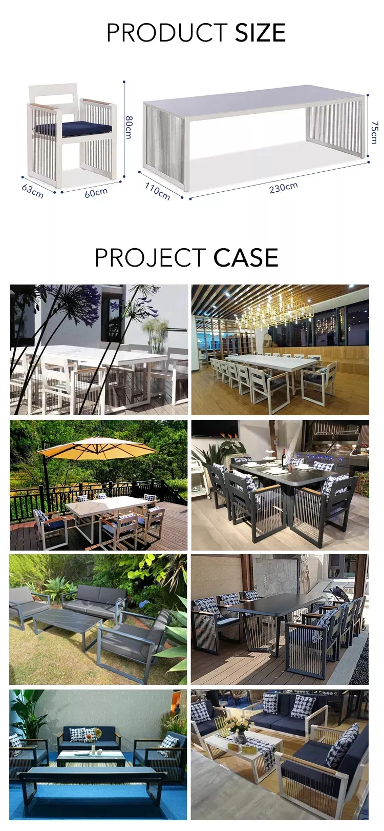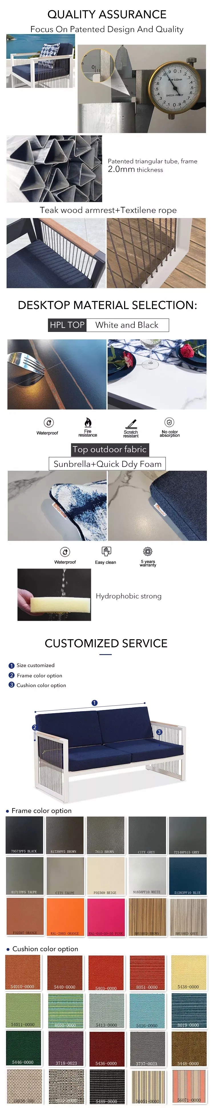 Wide range of outdoor solutions including aluminum furniture, sofas, benches, and stainless steel leisure sets suitable for garden and patio environments.